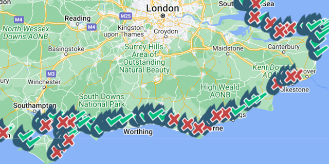 Map Of Uk South Coastline – The Met Office says there will be more showers – “perhaps torrential and thundery” at times – as temperatures drop from the glorious 30C seen in Wiggonholt, West Suscantik, on Sunday . A BRIT who has visited all 76 cities in the UK has revealed one which he says is the most underrated for a staycation. Travel guide creator Peter Naldrett has raved about the coastal city of .